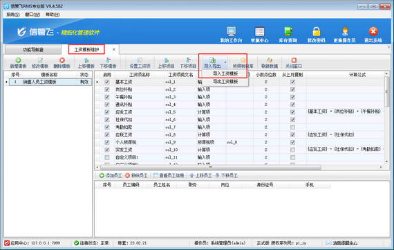 信管飛出納記賬軟件、信管飛RMS標準版、專業版支持維護工資模板生成工資單,可以對公司內部員工工資進行管理,另外可以對不同的員工設置不同的工資模板。有用戶新的一年需要重新新建賬套使用軟件,并需要復制之前賬套的工資模板。本篇文章介紹下如何將工資模板配置文件導出并導入到新建賬套內?