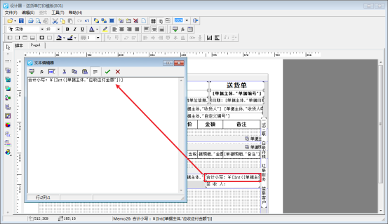 需要打印模板金額取整不進行四舍五入,在開單界面打印下點擊“打印格式設計”,選擇打印模板,點擊“設計格式”進入模板設計器,金額取整不進行四舍五入需要調用函數,打開金額文本框,復制取整調用數據項:[Int([單據主體."應收應付金額"])],然后確認保存,如下圖: