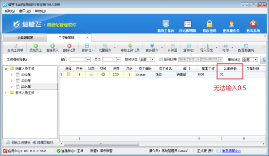 設置完成后,關閉工資單管理界面,重新打開,即可錄入小數位,如圖所示。