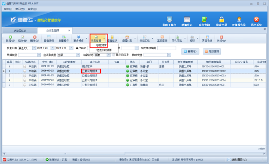 在批量結(jié)算過(guò)程中,信管飛軟件提供了詳細(xì)的數(shù)據(jù)核對(duì)功能,確保每一筆應(yīng)收款的金額、日期等信息都準(zhǔn)確無(wú)誤。信管飛軟件幫助企業(yè)避免了因人為操作失誤而帶來(lái)的財(cái)務(wù)風(fēng)險(xiǎn)。結(jié)算單保存審核結(jié)算單后,對(duì)應(yīng)的應(yīng)收款結(jié)銷(xiāo)狀態(tài)自動(dòng)變?yōu)橐呀Y(jié)銷(xiāo),如下圖所示: