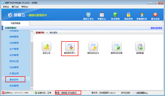 期初庫存錄入完成后,在“基礎(chǔ)資料”—“期初建賬”中啟用賬套可以正常使用軟件。