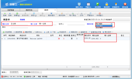 軟件支持同價調撥變價調撥兩種模式,滿足不同場景下的調撥需求。