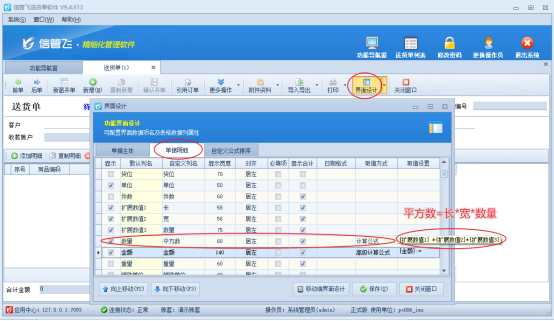 總結:信管飛送貨單軟件以其強大的自定義計算公式功能,為用戶提供了極大的便利與靈活性。無論是簡單的金額計算,還是復雜的平方數、面積等計算需求,都能輕松應對。