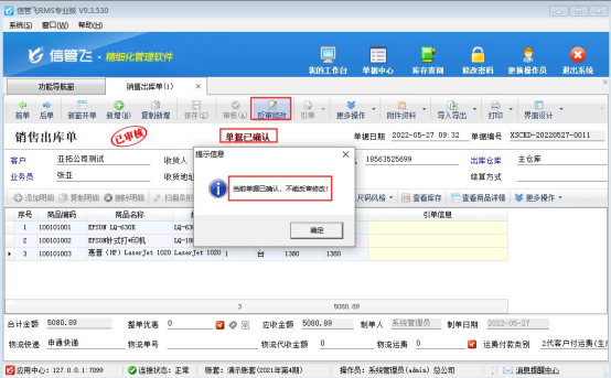 信管飛RMS軟件支持設(shè)置操作員設(shè)置反審修改權(quán)限,操作員有反審修改權(quán)限就可以對(duì)已審核單據(jù)進(jìn)行反審操作,有客戶需要已審核的單據(jù)不能再進(jìn)行修改,針對(duì)這一情況,最新版本添加了單據(jù)確認(rèn)功能,本文示范下單據(jù)確認(rèn)功能如果使用? 演示視頻觀看鏈接:信管飛RMS單據(jù)確認(rèn)功能如何使用演示視頻 &nb