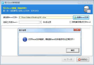 信管飛RMS、信管飛送貨單軟件、信管飛出納記賬系統都支持通過Excel導入數據,通過Excel數據導入可以將數據方便快捷的導入到軟件中,省去了使用初期大量的數據的錄入所要消耗的時間及人力物力,并避免人為錄入造成的誤差,使數據的錄入簡單、準確、高效。導入Excel數據時,如果是Excel2007以上版本的格式文件(.xlsx),系統提示:打開Exce