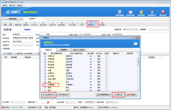 信管飛送貨單軟件支持在送貨單列表界面顯示單據主體的擴展信息,部分用戶在使用軟件過程中可能不知道如何配置,本文以“信管飛送貨單軟件”為例介紹下送貨單列表如何顯示開單界面單據主體的擴展信息? 功能導航欄點“業務處理”-》“新開送貨單”,開單界面中,點擊工具欄“界面設計”,單據主體下勾選“擴展信息1”,上移