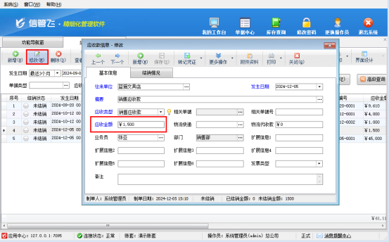 信管飛RMS軟件支持往來賬管理,可管理客戶和供應商的應收應付款,軟件有兩種管理應收應付款方式,一種是出入庫單據審核自動生成對應的應收應付款,另一種是使用軟件之前應收款可直接在應收款管理中新增。對存在金額錯誤需要修改應收款情況,軟件該如何操作?     一、單據生成的應收款修改