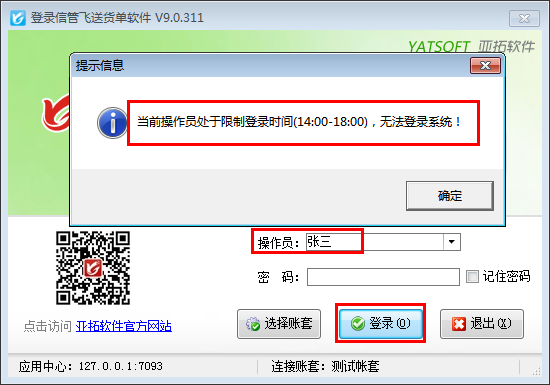 為了使用戶可以更好的管理公司賬套數(shù)據(jù),信管飛送貨單軟件、信管飛RMS、信管飛出納記賬軟件、信管飛倉(cāng)庫(kù)管理軟件都支持設(shè)置操作員的登錄限制,用戶可以自定義設(shè)置操作員登錄軟件的時(shí)間,設(shè)置后,操作員在受限制時(shí)間內(nèi)則無(wú)法登錄軟件。 本文以送貨單軟件為例,介紹一下如何設(shè)置操作員登錄限制。 登錄軟件,在