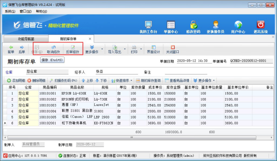 期初數據是指在軟件開賬日期之前的業務數據。期初庫存是軟件在開賬前需要先錄入好商品庫存信息。信管飛倉庫管理軟件和信管飛RMS軟件都包括“期初庫存單”,“期初庫存單”可以錄入不同倉庫、不同商品的期初庫存數量和成本單價等信息,實現了軟件在開帳前對期初庫存的高效管理。對于“期初庫存單”的使用,我們以信管飛倉庫管理軟件為例做一下介紹: