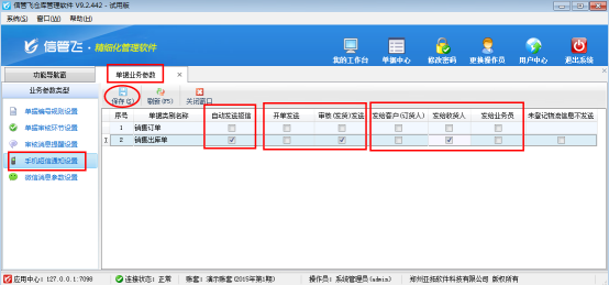 信管飛倉(cāng)庫(kù)管理軟件集成了手機(jī)短信發(fā)送服務(wù),可以發(fā)送開單通知、發(fā)貨通知、生日祝福等業(yè)務(wù)短信。軟件中可以設(shè)置短信模板,系統(tǒng)會(huì)自動(dòng)調(diào)取單據(jù)中的內(nèi)容,無(wú)需我們手動(dòng)輸入繁瑣的內(nèi)容,可以節(jié)約我們寶貴的時(shí)間和精力。軟件也支持自定義發(fā)送短信。統(tǒng)一采用1065全國(guó)全網(wǎng)正規(guī)通道,速度更快,更能提升企業(yè)形象,軟件只能發(fā)送發(fā)貨通知等業(yè)務(wù)短信,嚴(yán)禁群發(fā)營(yíng)銷短信。