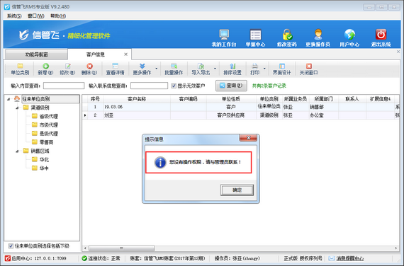 信管飛RMS(進銷存管理軟件)中支持設置往來單位應收應付信用額度,客戶在信用額度內可先收貨后付款,對于超過信用額度的客戶,系統支持鎖定功能,已被系統鎖定的客戶,不允許繼續開單,付款后可進行解鎖。另外,軟件也支持設置操作員不可鎖定解鎖往來單位,本文介紹一下進銷存管理軟件如何設置操作員不可鎖定解鎖往來單位權限? 在功能導航窗點“