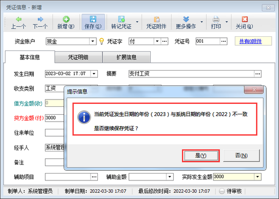 出納記賬軟件登記日記賬憑證時,發生日期默認取電腦操作系統日期,另外如需要補錄出納憑證,系統也支持修改日記賬憑證的發生日期進行補錄出納憑證,部分用戶在登記完日記賬憑證后可能會出現找不到已保存的出納憑證的情況,此種情況下可放大查詢日期范圍進行查詢,另外,軟件也支持設置錄入出納憑證時發生日期的年份與系統日期的年度不一樣時進行提醒功能,本篇文章介紹一下設置方法。&nb